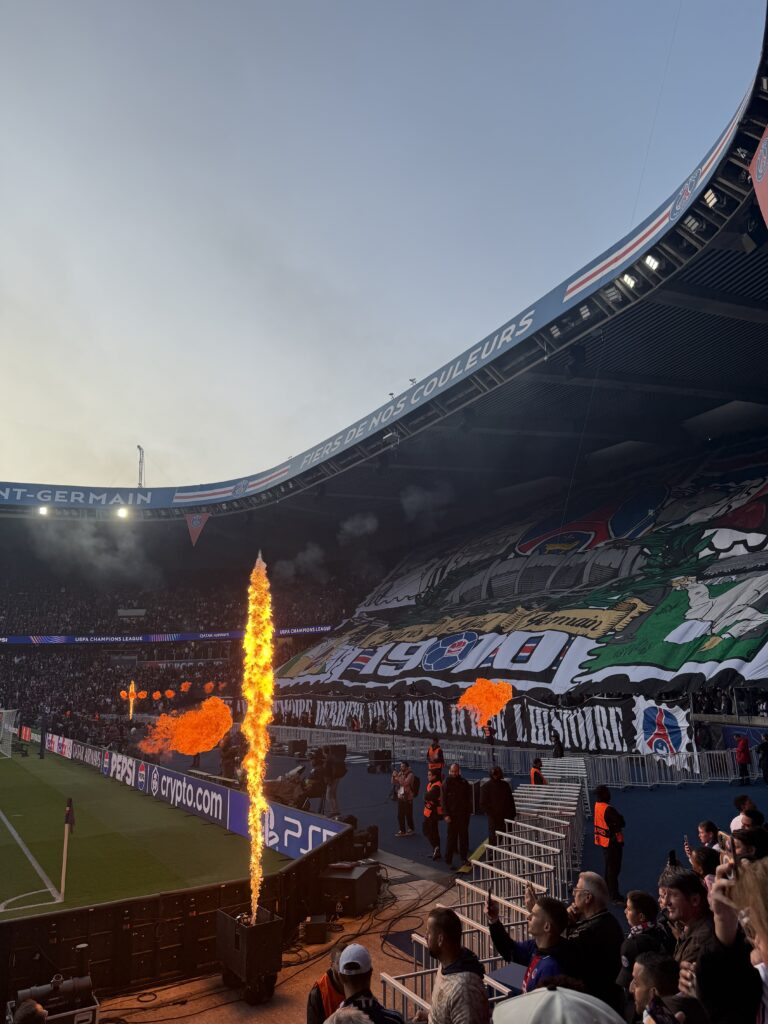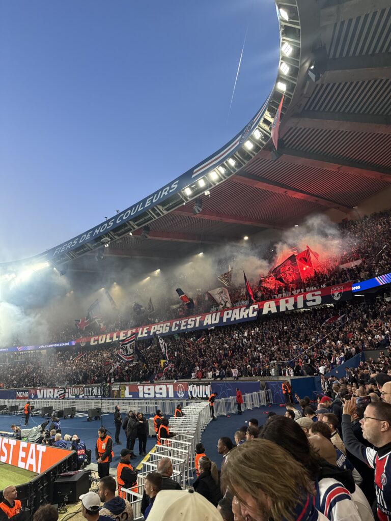 Cette photo a été prise lors de la demi-finale de Ligue des Champions opposant le Paris Saint Germain à Arsenal, au Parc des Princes, le soir de la qualification en finale. Depuis les tribunes, l’image capture l’intensité du moment : le stade illuminé, la pelouse vibrante, les tribunes pleines et l’atmosphère électrique d’un match décisif.